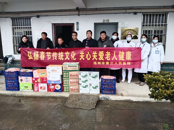 1月26日,市第三人民醫(yī)院副院長劉隆盛率領醫(yī)護業(yè)務骨干一行8人,赴涓橋、里山敬老院開展“弘揚春節(jié)傳統(tǒng)文化,關心關愛老人健康”義診慰問活動,在為老人們送上牛奶、面包、水果等慰問品的同時也送去了節(jié)日的問候和祝福。