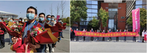 馬鞍山的支援任務(wù)于3月26日結(jié)束,在這11天的奮戰(zhàn)中,我們池州醫(yī)療隊共計完成2萬多管的檢測量,檢測人數(shù)達到25萬多人次。在結(jié)束當天,馬鞍山市舉行了隆重的歡送儀式,為我們送上鮮花還有可愛的冰墩墩紀念品。在歸程途中,看到沿路不斷搖擺著小紅旗來熱情歡送的市民,以及一路護送著我們的帥氣的交警,心中的激動和自豪不免陣陣涌來,感覺這11天的努力非常值得。