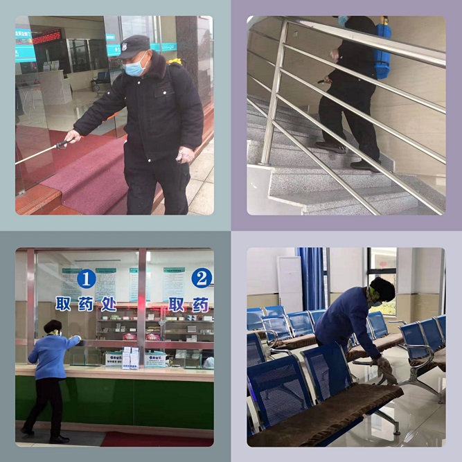 物業(yè)公司組織工作人員對(duì)全院各處進(jìn)行84消毒