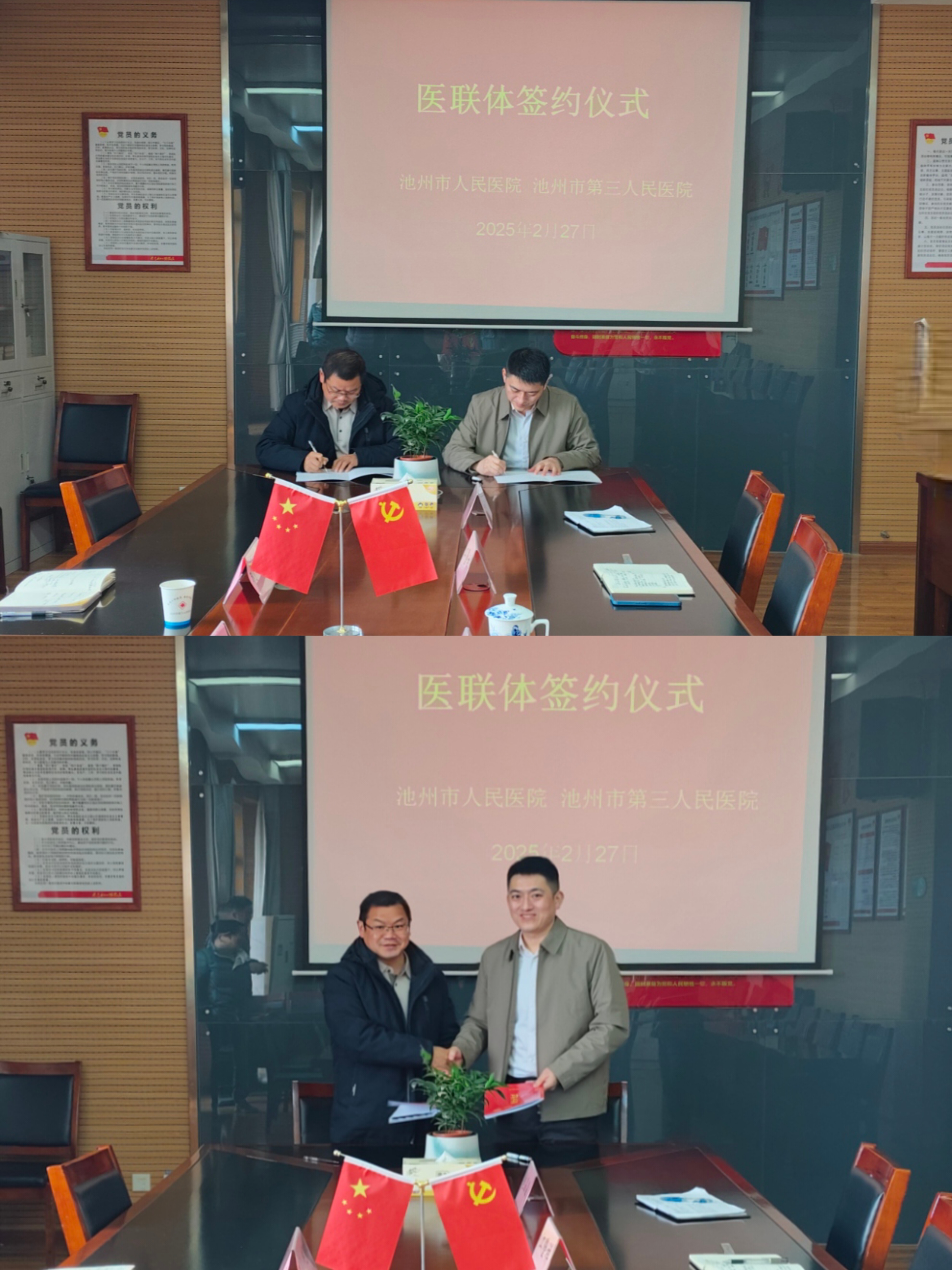 2月27日上午,池州市第三人民醫(yī)院和池州市人民醫(yī)院醫(yī)聯(lián)體簽約暨精神科聯(lián)合病房揭牌儀式在我院成功舉行。市人民醫(yī)院黨委委員肖主海一行3人、市三院副院長張曉明及相關(guān)科室負(fù)責(zé)人出席儀式并開展座談交流。