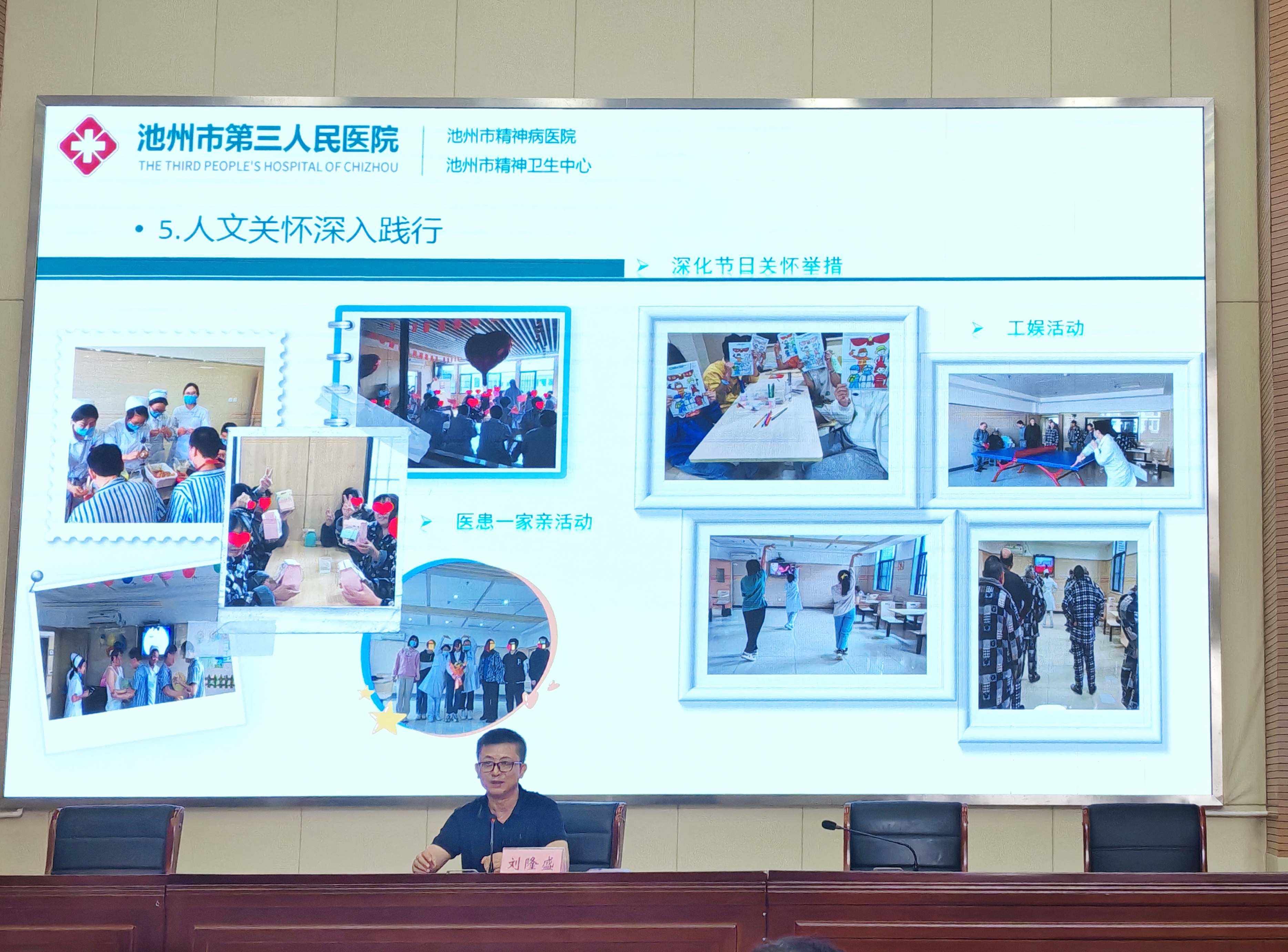 座談會(huì)上,池州民盟主委、市三院院長劉隆盛對(duì)盟員們的到來表示熱烈歡迎和衷心感謝,并圍繞醫(yī)院基本情況、近年來在服務(wù)質(zhì)量提升、科研創(chuàng)新突破、心理服務(wù)拓展、就醫(yī)體驗(yàn)改善及人文關(guān)懷深化等方面的工作成效與經(jīng)驗(yàn)做法進(jìn)行了詳細(xì)介紹。
