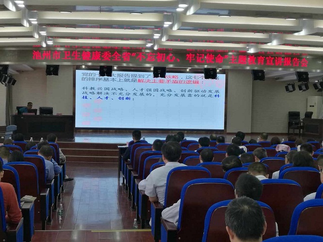 10月10日上午,市三院組織全院黨員干部20余人,在黨委書記、院長(zhǎng)唐達(dá)亮的帶領(lǐng)下,在市人民醫(yī)院六樓會(huì)議室參加市衛(wèi)生健康委舉辦的“不忘初心,牢記使命”主題教育宣講報(bào)告會(huì)。