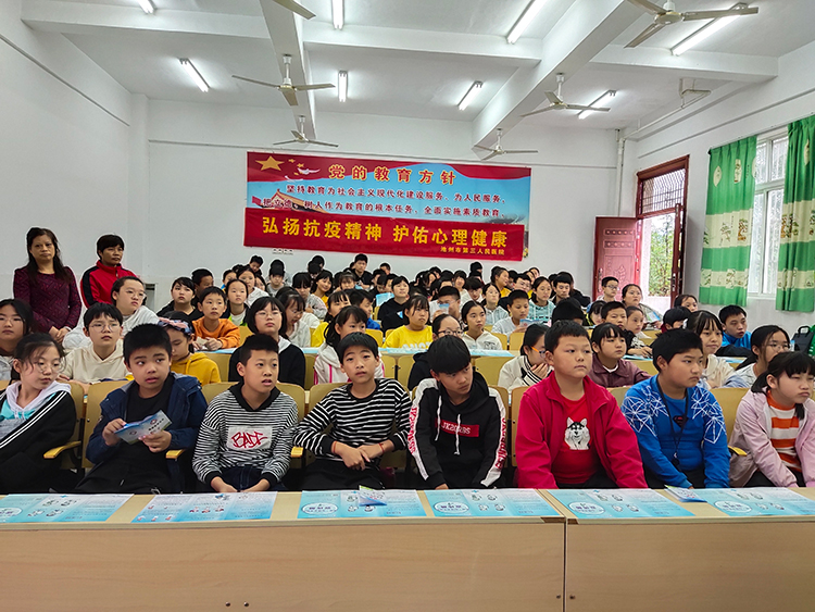 講座中,童志禮副院長(zhǎng)從青少年常見的心理健康問題、心理健康狀況的調(diào)節(jié)疏導(dǎo)以及新冠疫情防控中個(gè)人防護(hù)的要求等方面進(jìn)行了介紹,深入淺出的講解贏得了同學(xué)們的陣陣掌聲。此次講座共有150余名學(xué)生接受了培訓(xùn),同時(shí)發(fā)放宣傳材料300余份。