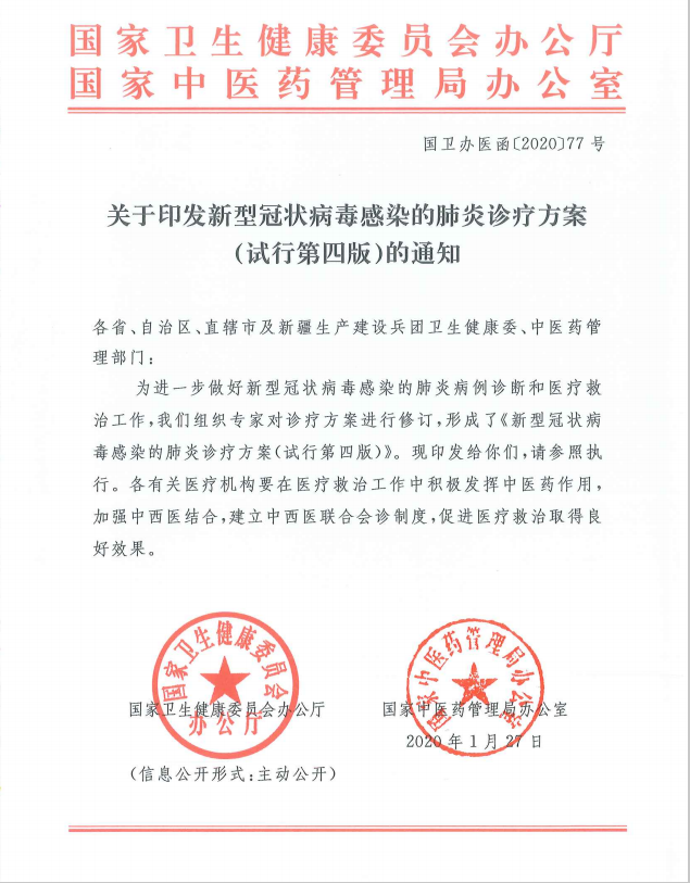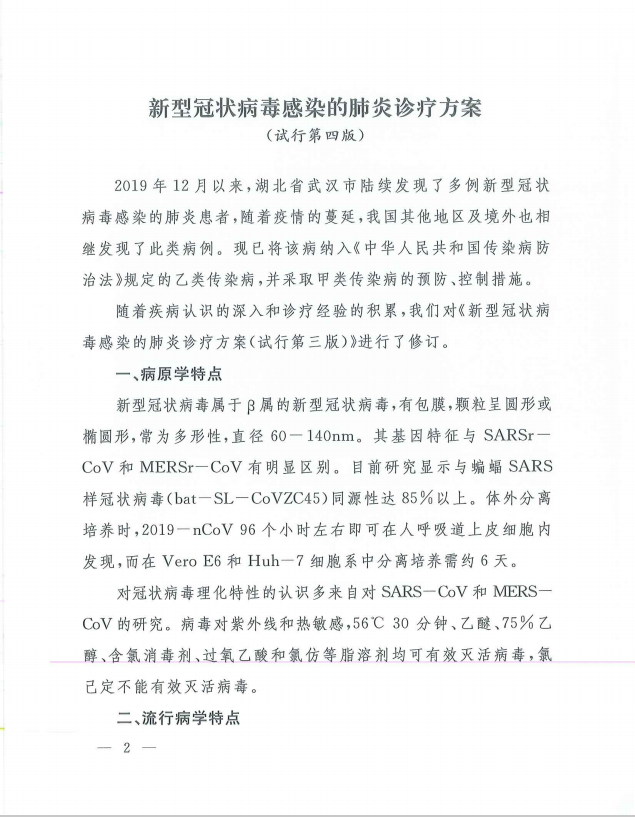 附件:關于印發(fā)新型冠狀病毒感染的肺炎診療方案(試行第四版)的通知upload/2020128131758511.pdf