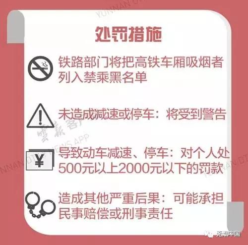 ● 高鐵列車內(nèi)安裝了煙感和火警探測裝置,乘客在車廂內(nèi)或衛(wèi)生間內(nèi)吸煙都會引發(fā)煙霧報警,引起列車緊急降速,從200至300公里的速度急降至80公里。