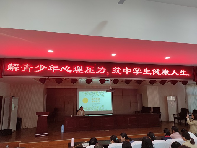 市三院心理健康專家以“壓力管理 陽光心態(tài)”為主題,從什么是壓力入手,分析了中學生學習、生活中的各種壓力,講述了壓力對人的影響,并就怎樣進行壓力管理做了詳細介紹?;顒又?,同學們積極參與互動,現(xiàn)場氣氛熱烈,不時響起陣陣掌聲。