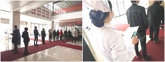 安排防疫志愿者對出入醫(yī)院的每一個人員進行體溫監(jiān)測及酒精消毒;