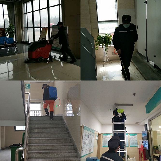 治療一線在醫(yī)院,防控一線在物業(yè)。疫情發(fā)生以來,物業(yè)公司高度重視,管理人員帶頭放棄休假,員工紛紛提前上崗,積極組織人力、物力協(xié)調(diào)各方資源,周密部署、有序推進(jìn)。自大年三十以來,物業(yè)公司管理人員、服務(wù)人員始終堅(jiān)持在一線為患者及其家屬、醫(yī)護(hù)職工提供全方位、不間斷的安全防護(hù),嚴(yán)防突發(fā)事件發(fā)生。物業(yè)公司始終嚴(yán)格把控醫(yī)院重點(diǎn)公共區(qū)域、衛(wèi)生間、電梯間內(nèi)外、樓梯、門診導(dǎo)診臺(tái)、辦公場(chǎng)所、會(huì)議室等區(qū)域的消殺工作,堅(jiān)持每天2次進(jìn)行全面消毒工作,并張貼各類溫馨提示,同時(shí)利用周末時(shí)間對(duì)院內(nèi)所有醫(yī)療設(shè)備設(shè)施進(jìn)行全面消毒,安排專人對(duì)污水處理站、配電房、中心氧站、醫(yī)療廢棄物暫存點(diǎn)進(jìn)行專業(yè)的消殺工作,確保消毒無死角。在醫(yī)院大門口設(shè)置體溫檢測(cè)設(shè)施,協(xié)助醫(yī)務(wù)人員對(duì)前來就診患者及家屬耐心詢問、體溫檢測(cè)并做好登記記錄,嚴(yán)把入院的第一道關(guān)卡。
