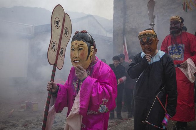 李白、杜牧、陶淵明、蘇軾更是在池州留下了無數(shù)的詩篇,近代的文化人,安慶人的女婿余秋雨先生,寫過一本書,叫《文化苦旅》,里面有一篇文章,叫:貴池儺(nuo),儺文化從漢代即大為興盛,是在特定季節(jié)驅(qū)逐疫鬼的祭儀,人們埋頭勞作了一年,到歲尾歲初,要抬起頭來與神對對話了。人們戴上面具,把人、神、巫、鬼攪成一氣,在渾渾沌沌中歌舞呼號,簡直分不清是對上天的祈求,還是對上天的強迫。反正,肅穆的朝拜氣氛是不存在的,涌現(xiàn)出來的是一股蠻赫的精神狂潮:鬼,去你的吧!神,你看著辦吧!