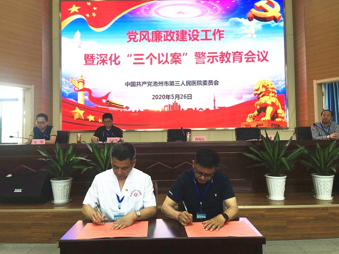 會(huì)上,院黨委書記與各分管領(lǐng)導(dǎo),分管領(lǐng)導(dǎo)與各分管科室(病區(qū))負(fù)責(zé)人院科兩級(jí)分別簽訂了《2020年黨風(fēng)廉政建設(shè)責(zé)任書》;醫(yī)護(hù)人員簽訂《維護(hù)醫(yī)?;鸢踩兄Z書》并組織觀看了警示教育片《叩問初心—貪欲之害》,以案明紀(jì)、以案說法,警示黨員干部筑牢思想防線,守住用權(quán)底線,堅(jiān)決不踩紅線。
