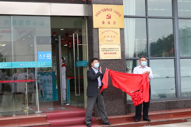 會(huì)前,唐達(dá)亮、胡越在醫(yī)院門診樓前進(jìn)行了精神??漆t(yī)聯(lián)體揭牌儀式。