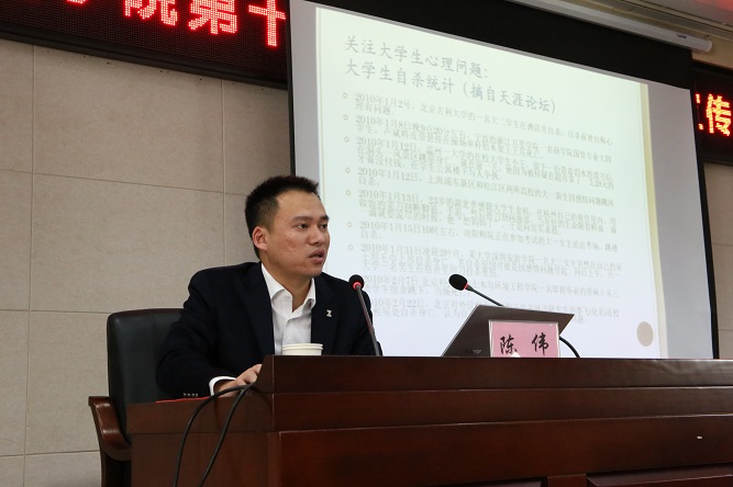 此次講座陳偉以大學(xué)生常見精神疾病癥狀與識(shí)別為主題,系統(tǒng)闡述了各類常見的精神疾病,重點(diǎn)介紹了精神分裂癥的基本概念、臨床表現(xiàn)及相應(yīng)的識(shí)別方法以及心理危機(jī)的表現(xiàn)、識(shí)別和應(yīng)對(duì)。除此之外,陳偉還結(jié)合自身多年的求學(xué)及工作經(jīng)驗(yàn),用通俗易懂的語(yǔ)言與現(xiàn)場(chǎng)師生進(jìn)行互動(dòng),以便他們能對(duì)演講內(nèi)容有更好的理解。在現(xiàn)場(chǎng)提問答疑環(huán)節(jié),多名師生積極參與,氛圍十分濃烈,多次響起熱烈的掌聲。