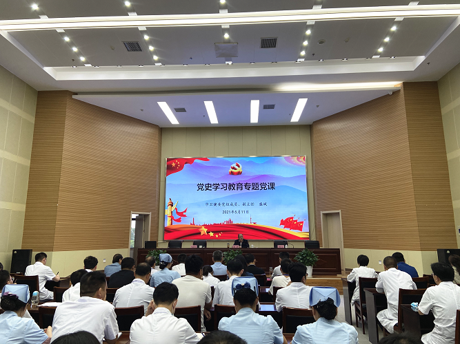 為迎接建黨100周年,5月11日下午,市衛(wèi)健委黨組成員、副主任盛斌到市三院為全體黨員干部上黨史專題黨課。會議由黨委書記、院長唐達亮主持,市三院全體黨員、積極分子50人參加。