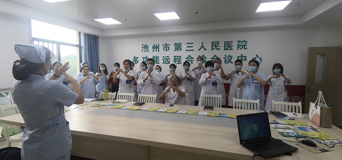 課后,門診部方姿護士長帶領大家學習使用了“不可以、我介意、請停止”控煙手勢。