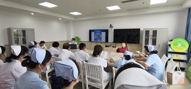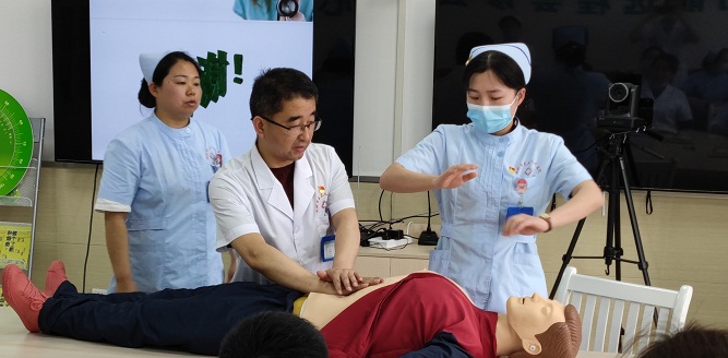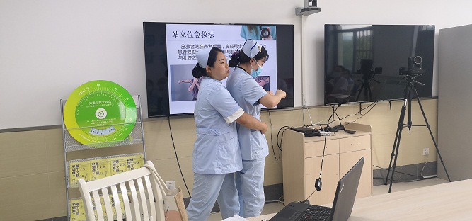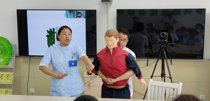 第二個講座是由五病區(qū)護師韓愛萍帶來的《海姆立克急救法》課程。她講述了在病區(qū)親手實施成功搶救一例噎食病人的故事,她結合親身經歷將海姆立克急救法的操作逐步分解,給大家做了詳細的講解和示范。