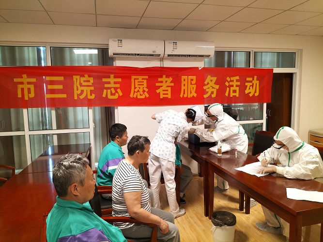 為進一步方便社會供養(yǎng)人員進行核酸檢測,526日下午,市三院副院長童志禮帶領(lǐng)檢驗科、醫(yī)務(wù)科工作人員及黨員志愿者前往市救助管理站和市老年公寓,開展“上門服務(wù)”。