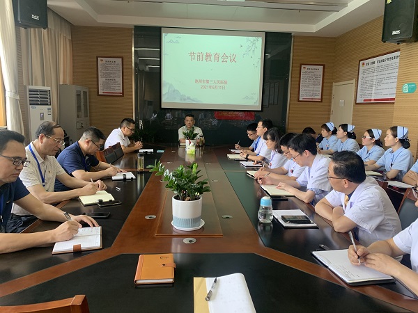611午,市三院召開端午”節(jié)前教育會(huì)議,醫(yī)院領(lǐng)導(dǎo)班子、全體中層以上干部40余人參加會(huì)議。黨委書記、院長(zhǎng)唐達(dá)亮主持會(huì)議。