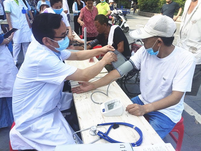 活動現(xiàn)場,市三院醫(yī)務人員以飽滿的熱情和周到的服務為老人們提供各種診療咨詢服務,并為群眾測量血糖、血壓,發(fā)放健康宣傳材料等,對他們提出的常見病防治等問題進行耐心細致的答疑解惑,讓群眾在家門口就能享受免費優(yōu)質的醫(yī)療服務。