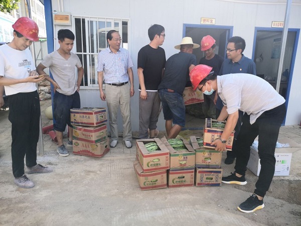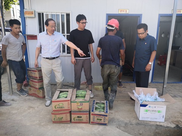 慰問組一行在建筑工地與建筑工人們親切交談,王華偉囑咐施工現(xiàn)場的工人務(wù)必將安全生產(chǎn)放在首位,檢查落實高溫防護(hù)措施,合理安排作息時間,避開高溫時段,把防暑降溫和安全工作相結(jié)合,在保障安全的前提下全力推進(jìn)項目建設(shè),高質(zhì)量地完成施工任務(wù)。