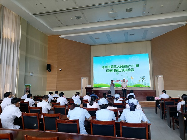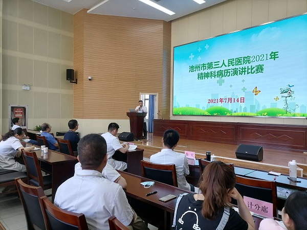 為進一步提高精神科醫(yī)師病歷書寫質(zhì)量及演講技能,7月14日下午,市第三人民醫(yī)院舉辦了2021年精神科病歷演講比賽。黨委書記、院長唐達亮出席并作重要講話,副院長劉隆盛、童志禮,醫(yī)務科科長兼四病區(qū)主任張曉明、二病區(qū)主任王勝、五病區(qū)副主任徐實擔任評委。