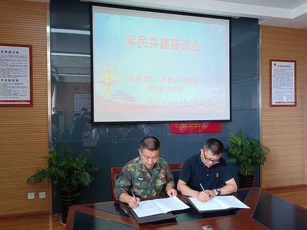 最后,駐池某部相關(guān)領(lǐng)導(dǎo)同市三院副院長(zhǎng)劉隆盛簽訂了《軍民共建協(xié)議書》。