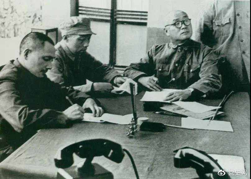 1949年11月1日起,人民解放軍向西南進軍。圖為鄧小平與劉伯承、張際春等研究進軍西南問題。