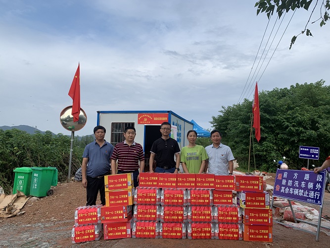 為感謝防汛一線人員辛勤付出,鼓舞黨群干群抗洪士氣,7月20日下午,市三院黨委書(shū)記、院長(zhǎng)唐達(dá)亮一行慰問(wèn)堅(jiān)守在防汛一線清溪社區(qū)、里山村的黨員干部群眾,向他們送去了礦泉水、方便面、八寶粥等生活物資及三院全體職工的關(guān)心關(guān)懷。唐達(dá)亮一行與防汛人員親切交流,了解防汛工作情況,走訪查看了現(xiàn)場(chǎng)水情汛情,對(duì)防汛人員晝夜奮戰(zhàn)、嚴(yán)防嚴(yán)守的無(wú)私奉獻(xiàn)精神致以崇高的敬意,表示將向防汛人員看齊,做到聽(tīng)黨指揮、對(duì)黨忠誠(chéng),黨群齊心、共抗洪水。