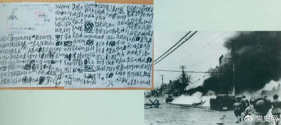 毛澤東起草的關(guān)于平津戰(zhàn)役作戰(zhàn)方針電報的手稿。1948年11月29日至1949年1月31日,東北野戰(zhàn)軍和華北軍區(qū)部隊共同發(fā)起平津戰(zhàn)役,殲滅和改編國民黨軍傅作義集團52萬余人。