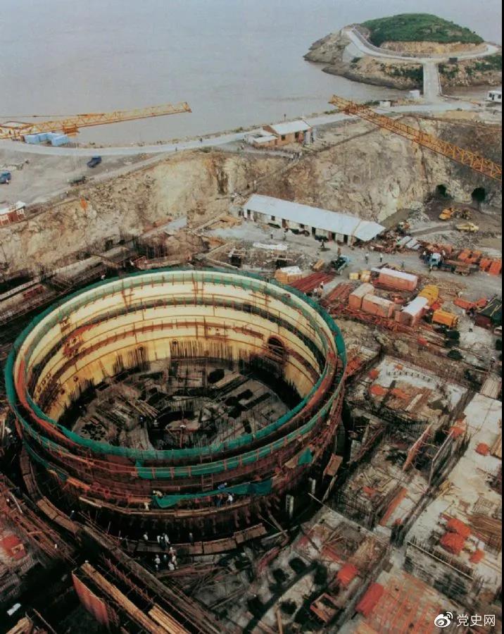 1991年12月15日,中國第一座自行設(shè)計、自行建造的核電站——秦山核電站并網(wǎng)發(fā)電。圖為建設(shè)中的秦山核電站。
