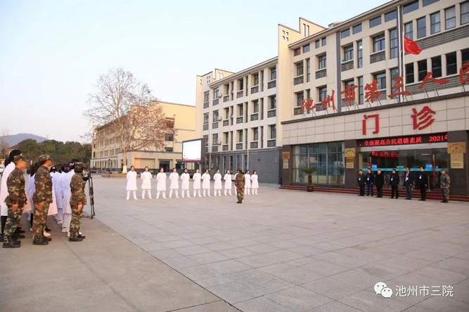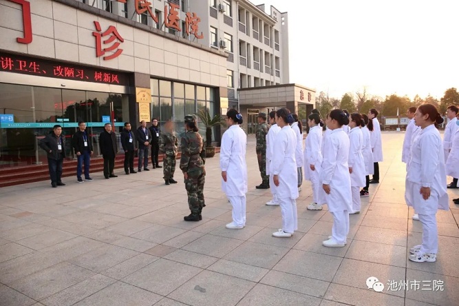 為進(jìn)一步提升醫(yī)務(wù)人員的凝聚力和戰(zhàn)斗力,打造一支政治堅(jiān)定、作風(fēng)優(yōu)良、紀(jì)律嚴(yán)明的醫(yī)療隊(duì)伍,12月17日下午,市三院邀請(qǐng)駐池某部現(xiàn)役7名教官在醫(yī)院門診廣場開展軍姿隊(duì)列訓(xùn)練。