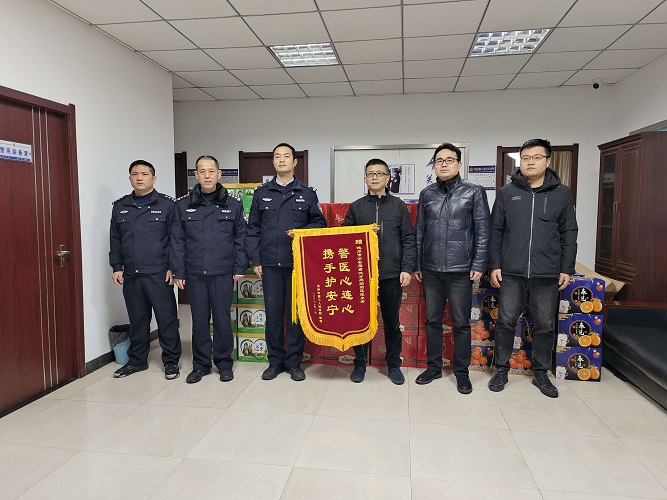 在站前區(qū)派出所,劉隆盛代表醫(yī)院黨政領(lǐng)導(dǎo)班子、全體干部職工向派出所干警送上一面印有“警醫(yī)心連心 攜手護(hù)安寧”的錦旗,由衷感謝他們多年來(lái)在配合送治患者、指導(dǎo)安保工作、提供便民服務(wù)、維護(hù)醫(yī)療秩序等方面給予市三院的支持和幫助,希望雙方繼續(xù)發(fā)揮優(yōu)勢(shì),持續(xù)深化警醫(yī)共建新舉措,一如既往地為維護(hù)醫(yī)院的和諧穩(wěn)定、維護(hù)轄區(qū)的長(zhǎng)治久安作出積極貢獻(xiàn)。