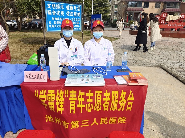 34日上午,市三院團(tuán)委組織青年醫(yī)護(hù)工作者赴秋浦街道翠微社區(qū)參加由團(tuán)市委、市文明辦組織的“學(xué)雷鋒”便民志愿服務(wù)集中活動(dòng)。
