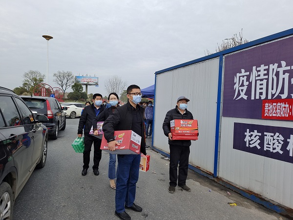 3月18日上午,市三院副院長劉隆盛,副院長童志禮,黨委委員、工會主席王正馬等一行5人來到高速路口疫情防控卡點,慰問在核酸采樣一線執(zhí)勤的醫(yī)務(wù)人員。