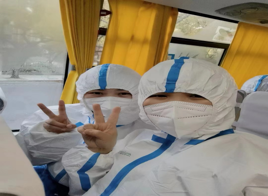 4月4日6點左右達到上海,工作人員準備的早點也不敢吃,水也不敢多喝,怕上廁所影響采樣任務,也為了減少暴露幾率。我們?nèi)翰蓸庸ぷ麝犡撠熞粋€小區(qū),我和同事兩人一組迅速進入工作狀態(tài),在上海志愿者的引導下上門入戶進行核酸采樣,一直到下午4點全部完成工作任務,我們收到了數(shù)不盡的感謝,還有很多人為我們鼓掌、比心和敬禮……從緊張到疲憊,伴隨著絲絲自豪感。