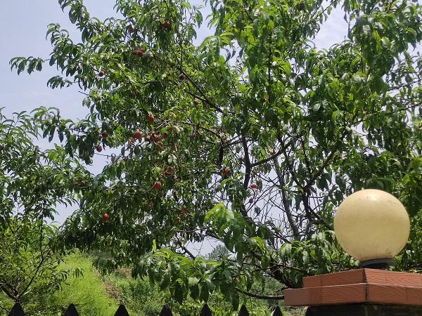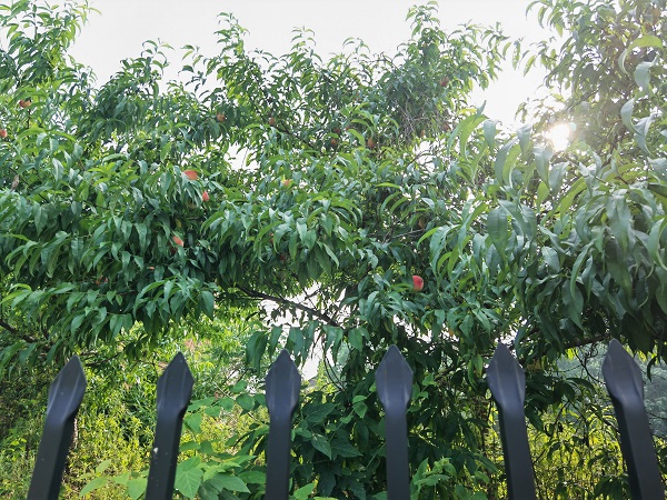端午節(jié)小長(zhǎng)假后第一天上班,由于老習(xí)慣,我沿著二期工程的柏油路行走,在醫(yī)院東南角第二污水處理站處的墻外,幾株桃樹(shù)上掛滿(mǎn)了既大又紅的桃子,雨后天晴的桃子十分誘人,于是我在想,怎么沒(méi)人摘呢?繼續(xù)向南走,發(fā)現(xiàn)幾棵桃樹(shù)上,節(jié)前還是又紅又粉的“野”桃子,現(xiàn)在落得滿(mǎn)地都是,吊在樹(shù)上的桃子也干癟了許多……