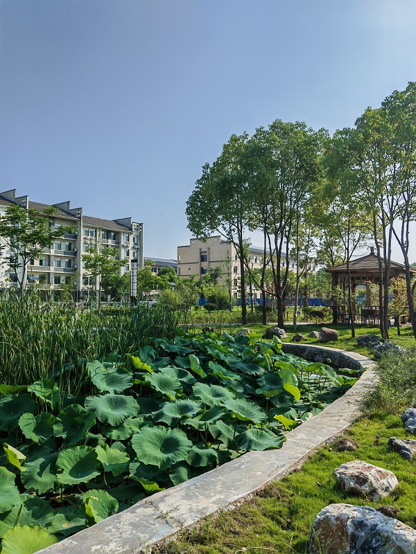 在醫(yī)院西南角有一個(gè)百余平方米的水面,主要植物有荷葉與香蒲,我們稱之為“君子池”。池塘面積不大,當(dāng)年養(yǎng)豬場(chǎng)的豬糞便直接注入池中,因此土質(zhì)肥沃,前面已有介紹。醫(yī)院一期工程,它在圍墻之外,沒有引起人們的重視。二期工程攬括在醫(yī)院內(nèi),我們索性加以改造,四周用石塊加固。去年只開了一朵紅荷花,我們稱之為一點(diǎn)紅,偶爾也有蜻蜓獨(dú)立。楊萬里《小池》詩(shī)的意境立刻展現(xiàn)在你的面前:小荷才露尖尖角,早有蜻蜓立上頭。