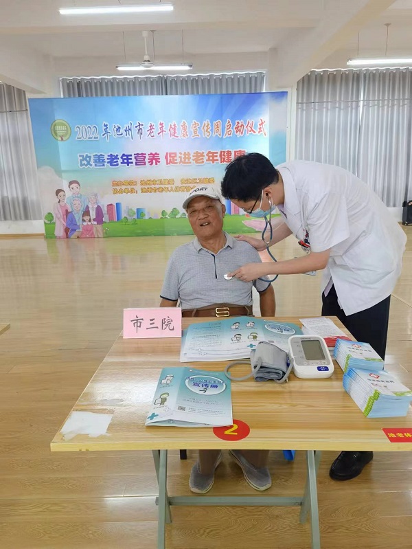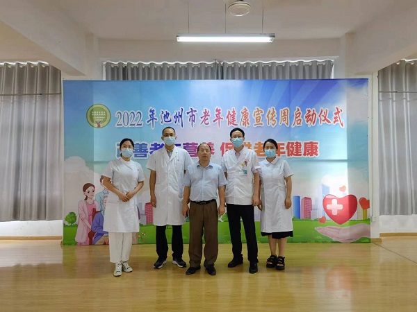 7月26日上午,“2022年池州市老年健康宣傳周”啟動(dòng)儀式在市老年體育活動(dòng)中心舉行,市三院組織醫(yī)務(wù)人員參加了啟動(dòng)儀式。