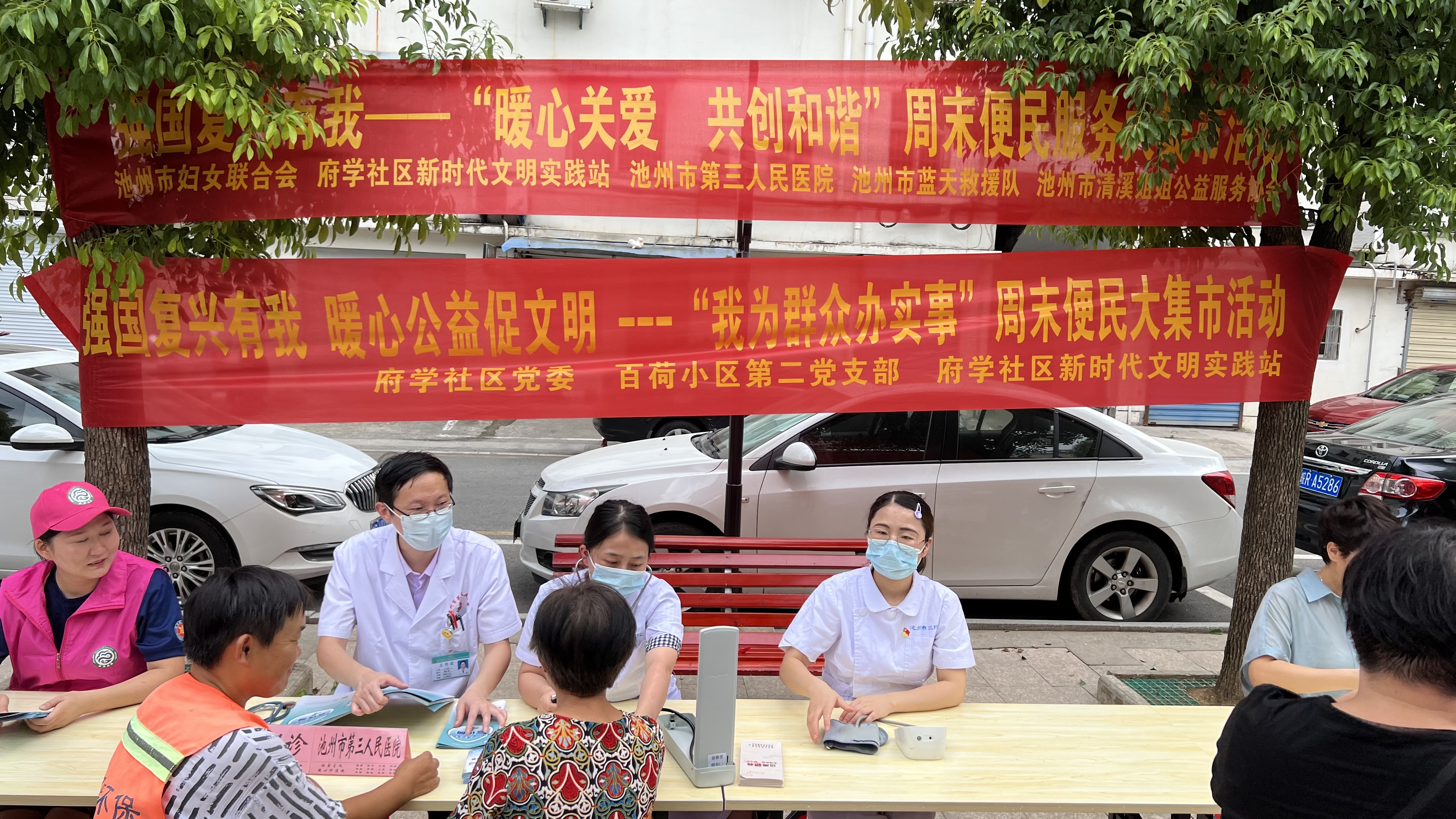 8月26日下午,市三院醫(yī)療服務隊一行4人赴府學社區(qū)開展了“暖心關愛、共創(chuàng)和諧”周末便民服務大集市活動,為社區(qū)居民提供了健康咨詢、醫(yī)療義診等服務。