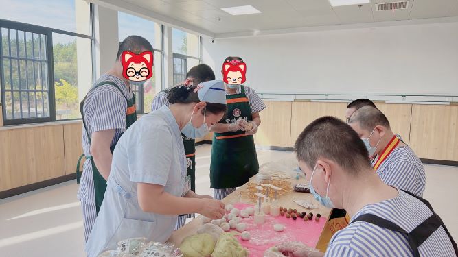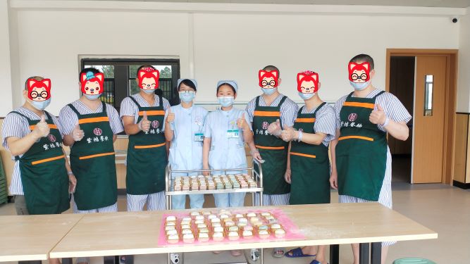 “七病區(qū)‘溫馨冰皮月餅坊’成立了,各位病友有沒有想嘗試做月餅的”,隨著七病區(qū)護(hù)士長汪榮一聲吆喝,“我報(bào)名、我參加……”七病區(qū)患者爭先恐后的說道。