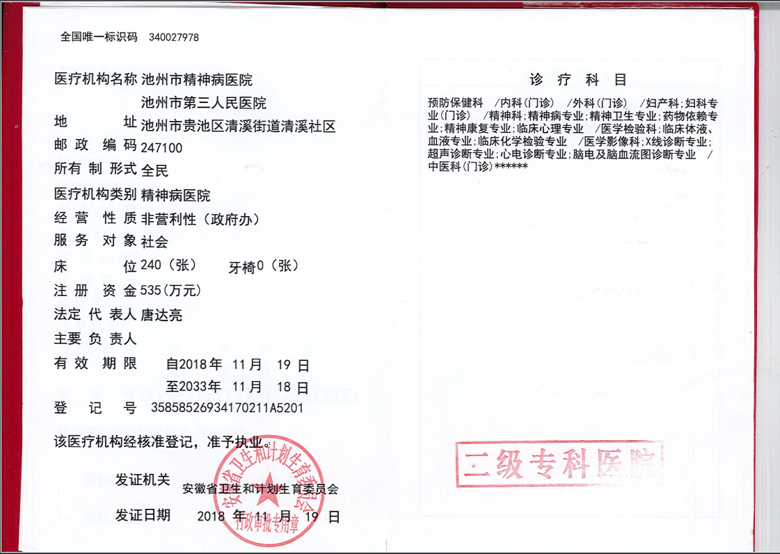 池州市第三人民醫(yī)院 版權所有 皖ICP16000805號-1 事業(yè)單位法人證書