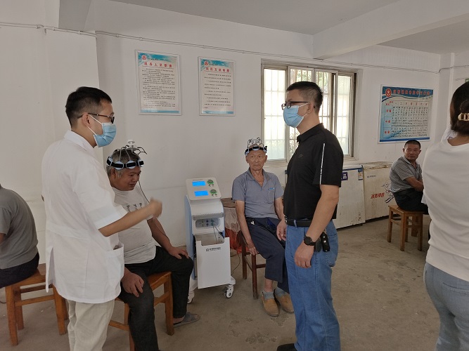 康復(fù)科醫(yī)務(wù)人員現(xiàn)場(chǎng)為頸椎腰腿疼痛的老人們開展推拿理療、康復(fù)物理因子治療等康復(fù)治療。