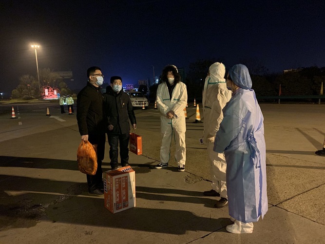 為了給奮戰(zhàn)在防疫一線的醫(yī)務(wù)人員加油打氣,1月28日晚10點(diǎn),市三院副院長(zhǎng)劉隆盛,黨委委員、工會(huì)主席王正馬到火車(chē)站出口、高速出口看望慰問(wèn)抗擊新型冠狀病毒感染的肺炎疫情的一線醫(yī)務(wù)人員,相關(guān)人員陪同。