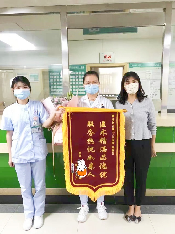 近日,市三院醫(yī)學(xué)心理科陳璐副主任收到已出院患者楊某贈(zèng)送的一面印有“醫(yī)術(shù)精湛品德優(yōu) 服務(wù)熱忱如親人”的錦旗,表達(dá)對(duì)陳璐副主任及醫(yī)學(xué)心理科醫(yī)護(hù)人員精湛技術(shù)和貼心服務(wù)的贊譽(yù)。