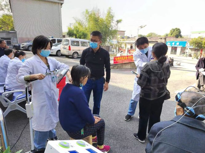 活動現場,醫(yī)務人員詳細了解前來就診群眾的健康情況,提供健康監(jiān)測、健康咨詢和診療服務。針對有頸肩腰腿痛的老人,康復治療師通過開展推拿理療、電磁波治療等方法有效緩解老人們的疼痛癥狀。針對睡眠不佳的老人,老年心理科醫(yī)師通過腦循環(huán)治療儀對其進行睡眠干預,改善睡眠狀況。針對患有高血壓等慢性病群眾,全科醫(yī)師為其提供測量血壓等常規(guī)醫(yī)療服務,并根據老年人的身體狀況提出治療建議和健康指導。