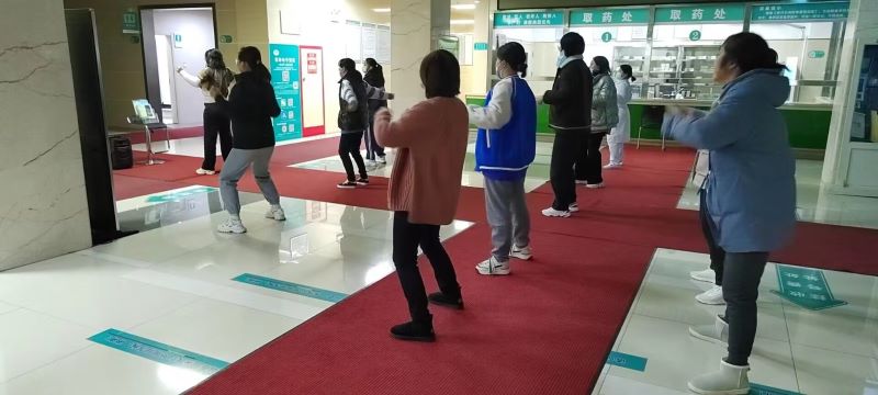 在這特殊的疫情防控階段,三院實(shí)施了全封閉管理,嚴(yán)格限制人員出入。為緩解因封閉給患者、家屬及院內(nèi)工作人員帶來的心理壓力,醫(yī)學(xué)心理科率先帶領(lǐng)大家跳起廣場(chǎng)舞。