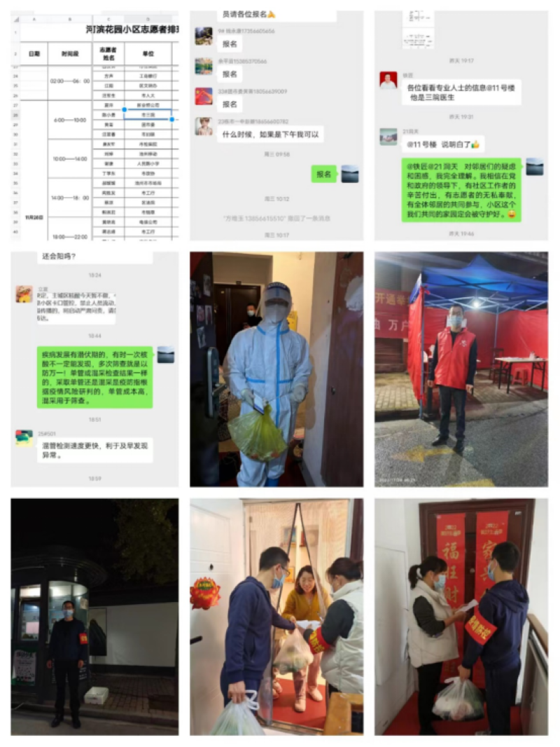 11月25日,我所在的小區(qū)實行進(jìn)出限制管理,近1200戶的小區(qū)按下暫停鍵,有太多事情,需要大量志愿者參與。我們第一時間自發(fā)成立:市直單位志愿服務(wù)群(后更名為東湖路河濱花園卡口志愿服務(wù)群),志愿者由最初十幾人到現(xiàn)在有兩百多人。來自各行各業(yè)的志愿者們,在社區(qū)的統(tǒng)籌安排下,隨時待命。隨著社區(qū)張紅書記在群里一聲令下:任務(wù)來了!志愿者立馬在群里自發(fā)報名投入志愿服務(wù)工作。在門崗、物資分發(fā)、核酸采集現(xiàn)場以及替群眾跑腿接送物資等等哪里都有我們的身影。