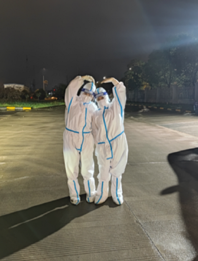 “白日不到處,青春恰自來。苔花如米小,也學牡丹開”無數(shù)的90、00后化身可愛的“大白”,身著厚重的防護服,在密不透風的盔甲之下,汗水浸透了我們的衣服,連手也被泡得泛白。但大家仍士氣高漲,為每一位居民認真采集核酸,即使汗流浹背,依然一絲不茍。感動的話時時在眼前出現(xiàn),一位奶奶的話:“你還沒吃飯吧!到我家來,我下面給你吃,”簡簡單單的一句話,頓時讓我淚流。在此期間,院領(lǐng)導和科室領(lǐng)導、同事給予我最真切關(guān)心與幫助,飲食上、生活上,盡其最大努力滿足我們的生活需求。