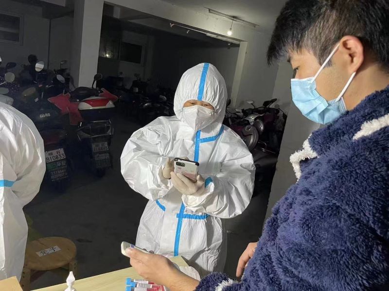 全力以赴,支援核酸采樣工作。“我是黨員,我先上!”凌瑩、王梅、徐凱等支部黨員帶頭報(bào)名參與核酸采樣。他(她)們不顧疲憊,奔赴“疫”線,挨家挨戶逐一上門(mén)進(jìn)行核酸采樣。寒冷的夜晚,黨員們身穿著厚重的防護(hù)服,手上拿著采樣物資,艱難地前行,但是沒(méi)有一人退縮,疫情期間讓鮮紅的黨旗飄揚(yáng)在抗疫最前線。