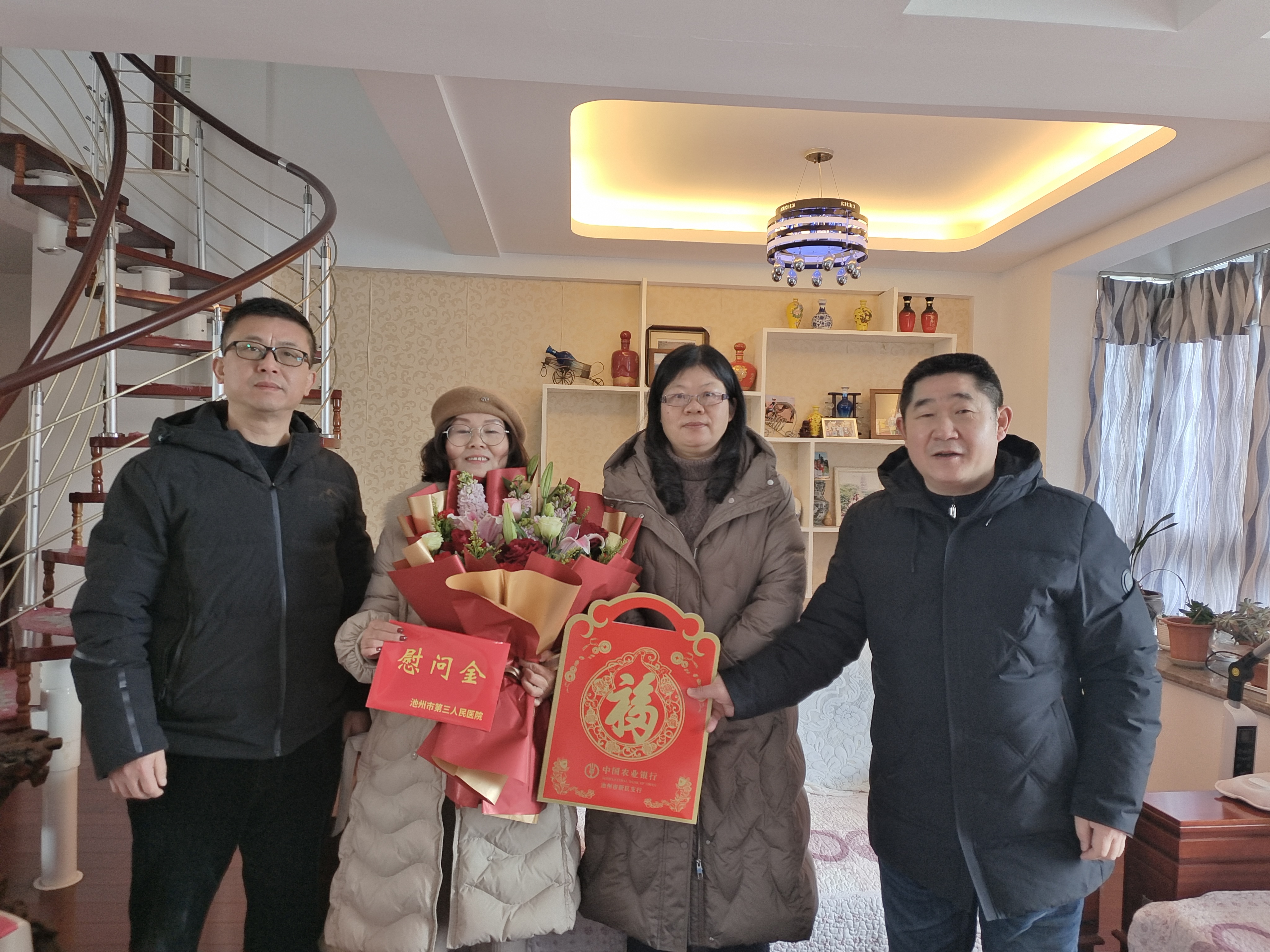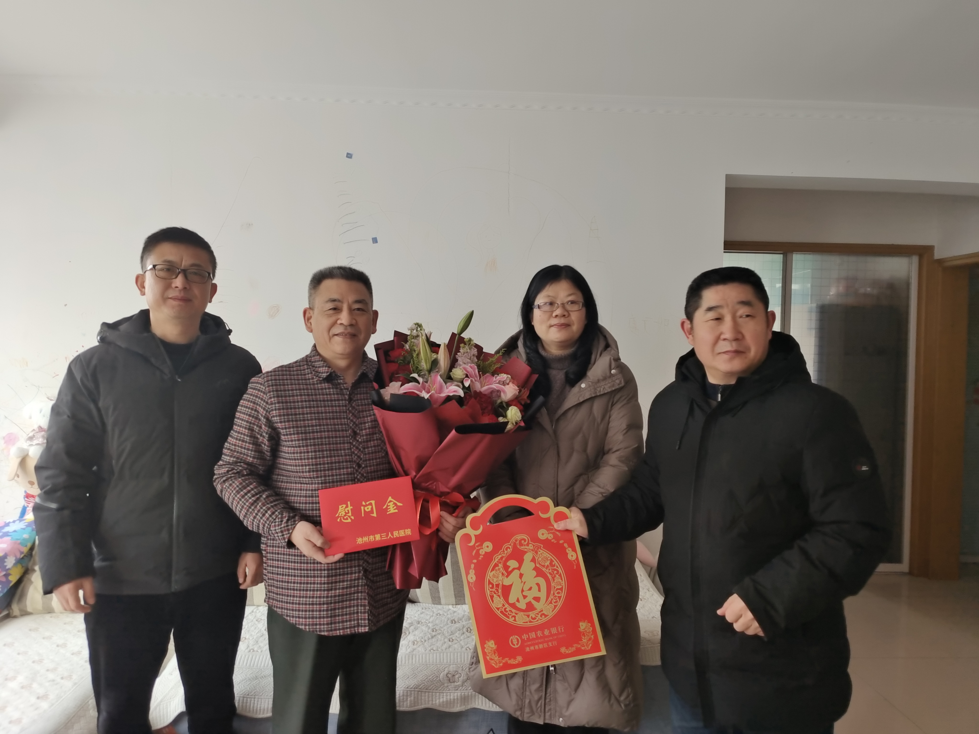 春節(jié)將至,歲寒情深。在2023年春節(jié)即將來臨之際,為做好關(guān)心、關(guān)愛退休職工的生活,1月17日上午,市第三人民醫(yī)院黨委書記方東霞,院長(zhǎng)劉隆盛,黨委委員、工會(huì)主席王正馬及相關(guān)科室負(fù)責(zé)人看望慰問了醫(yī)院退休干部職工,向他們送去新春的祝福與問候。