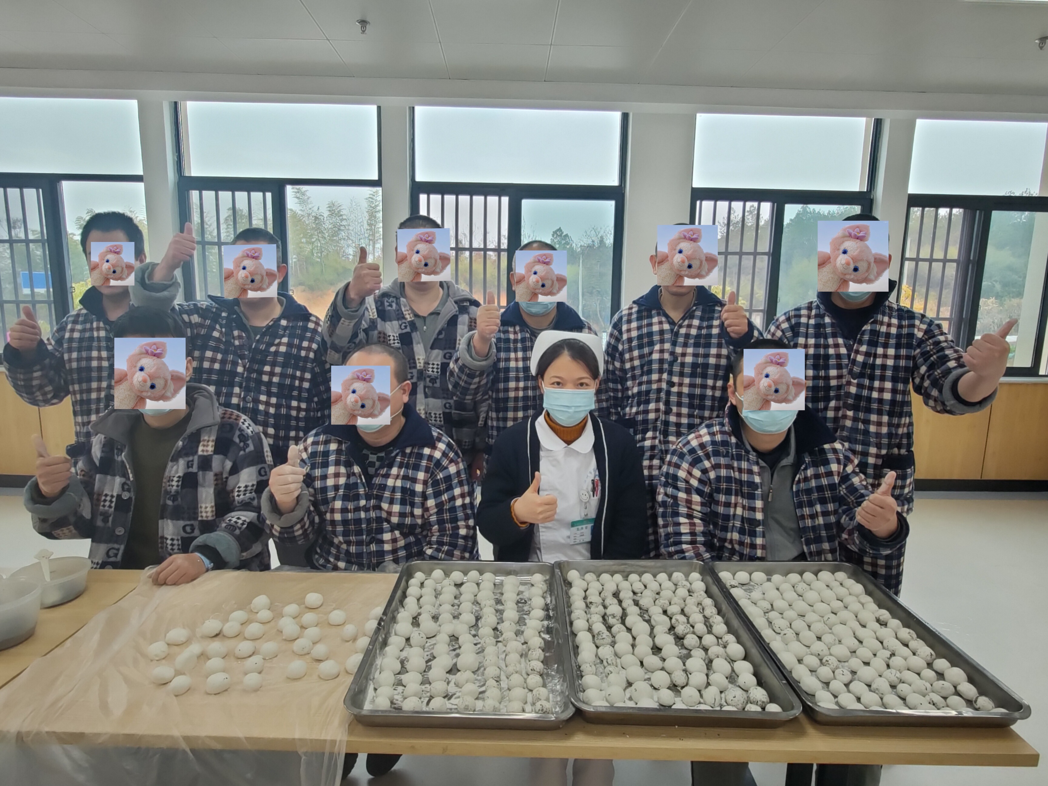 一大早,護士長就早早地準備好了包湯圓的相關食材,夜班護士也早早地發(fā)動大家參與進來。就這樣,我們包湯圓的活動正式開始啦!“我要和面?!薄拔乙?/span>餡。”“那我就包吧,我去洗手啦?!笨?,我們的患者爭先恐后地搶著做事情。湯圓的樣子是圓形的,意味著家家團團圓圓,甜甜蜜蜜;湯圓里的餡各種各樣,有豆沙的,有芝麻的,有花生的,還有葡萄干的。放在鍋里煮一煮,就像一個個乒乓球一樣漂在水面上,咬上一口又香又甜回味無窮。瞬間腦海里溢出的全是滿滿的香味。就這樣,我們一起花了一上午的時間終于把湯圓做好啦,下一步,我們就可以乖乖地等著吃湯圓啦。